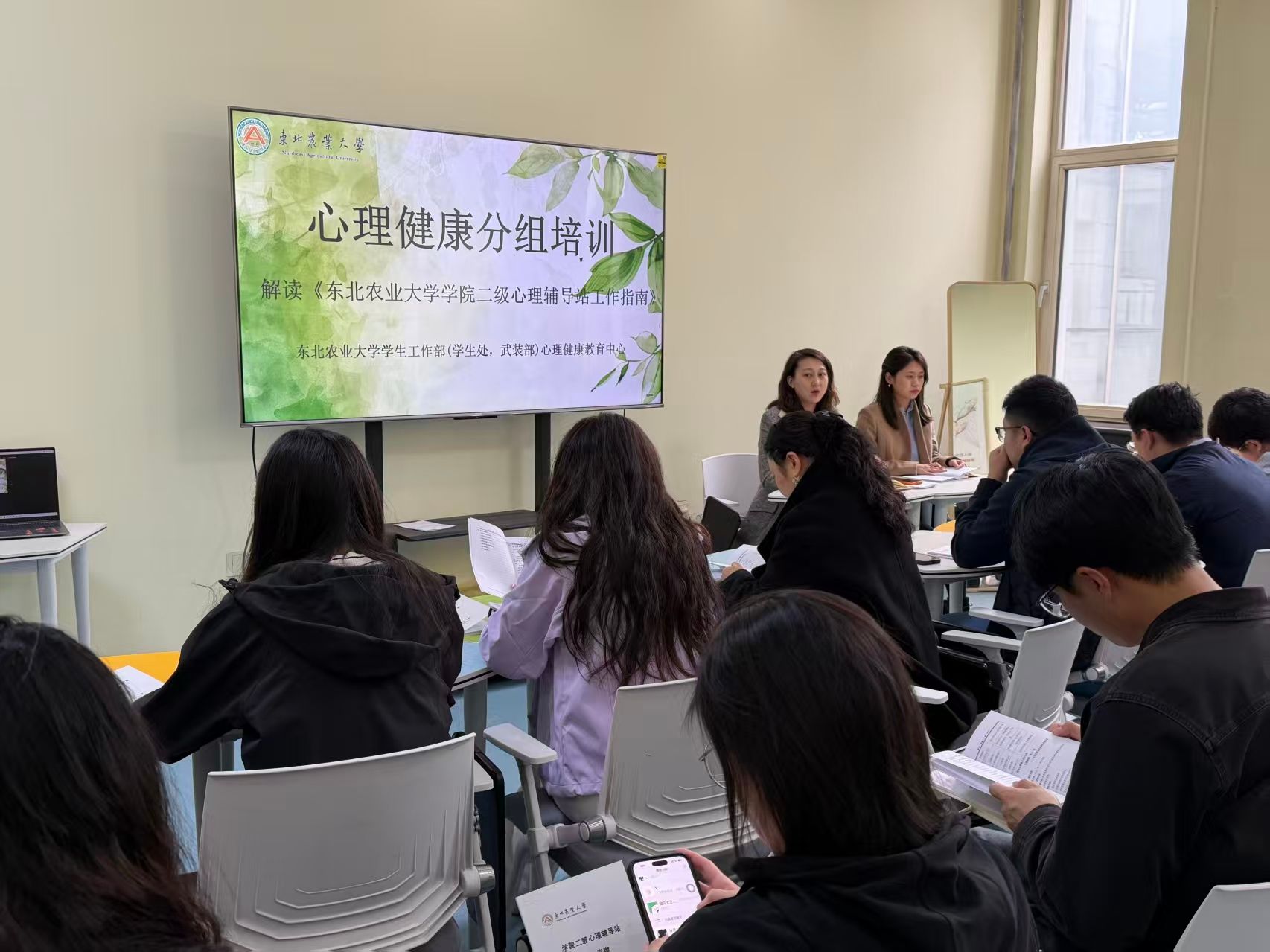 此次培训立足我校心理健康教育工作实际,以强化二级心理辅导站建设为核心,在前期充分调研各学院心理育人工作开展情况、梳理基层工作痛点难点的基础上,针对性优化工作流程、明晰工作职责,全新制定《东北农业大学学院二级心理辅导站工作指南》《东北农业大学朋辈互助学生指导手册》两项实操性文件,为基层心理工作开展提供科学指引与制度遵循。