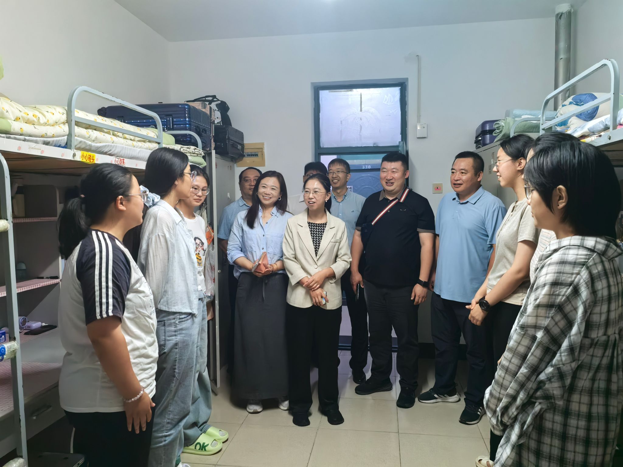 8月30日,学院领导班子与新生辅导员一行深入新生宿舍进行走访慰问,向他们表达学院的关怀与问候。走访期间,学院领导细致检查了宿舍的住宿环境与基础设施配置,详细了解新生的入住体验、适应状况以及实际需求,并鼓励大家尽快熟悉校园环境、融入集体生活,培养独立自主和人际交往能力,持续提升综合素质,为个人成长与发展奠定坚实基础。新生们纷纷表示,真切感受到了学院的温暖与重视,将以积极心态适应新环境,专注学业、努力奋进。