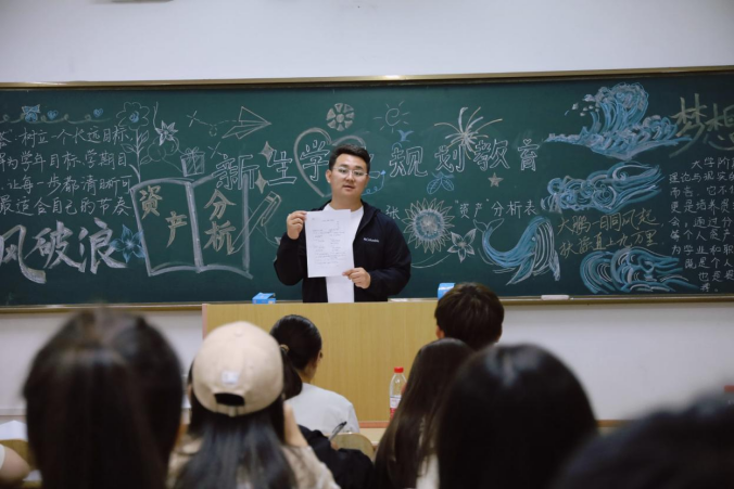 为全面落实立德树人根本任务,引导新生科学构建职业发展理念,明晰大学阶段的奋斗方向,切实筑牢未来发展的坚实根基,扣好大学生活的“第一粒扣子”,9月22日,经济管理学院结合专业特色,利用晚自习时间开展“大学第一张资产分析表”学风建设特色活动,学院全体新生辅导员、2025级全体新生参加活动。